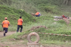 Teriimana Bonno, alors 3ème, chute ensuite devant lui, ce qui le fait chuter également. Il cale et met de longues secondes avant de pouvoir repartir, il parvient malgré tout à terminer cette manche à la 3ème place juste derrière Raiarii Vonbalou et Nicolas Jacq, les deux pilotes MX 1 qui roulent à domicile.