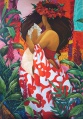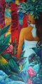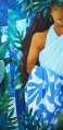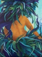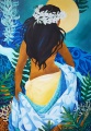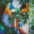 Elle peint selon ses envies. Elle ne s'impose ni thème, ni contraintes. Elle puise autour d'elle, elle assemble, elle marie et compose autour de ses fameuses vahine.