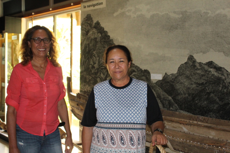 Vairea Tessier, archéologue, en charge de la documentation au Musée de Tahitie t des îles et Manouche Lehartel, à l'initiative de l'événement "100 ans de vie commune" au Musée.