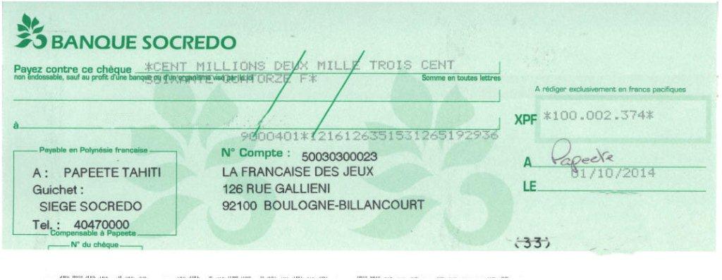 Le principe du jeu My Million est simple: chaque combinaison Euro Millions (mise de base 300 Fcfp) jouée en France (et donc en Polynésie française) se voit attribuer un code My Million. Parmi l'ensemble des codes attribués, un est forcément gagnant et permet ainsi de remporter 100 millions Fcfp à chacun des tirages du mardi et du vendredi. A noter que le rendement du jeu entre la Française des Jeux et la Pacifique des Jeux est différent -1 million d'euros d'une part et 100 millions de Fcfp d'autre part- car la mise de départ est également différente et plus élevée en France qu'en Polynésie. "Le principe est simple et inscrit dans nos règlements de jeu : le gagnant de My Million remporte 20 000 fois sa mise lorsque son code est tiré au sort. En Polynésie, la mise étant plus faible, le montant gagné est également plus petit" explique Guillaume Reynaud, le responsable Commercial et Marketing de la Pacifique des Jeux. 100 millions Fcfp est toutefois une somme coquette et le tout nouveau gagnant en est conscient.