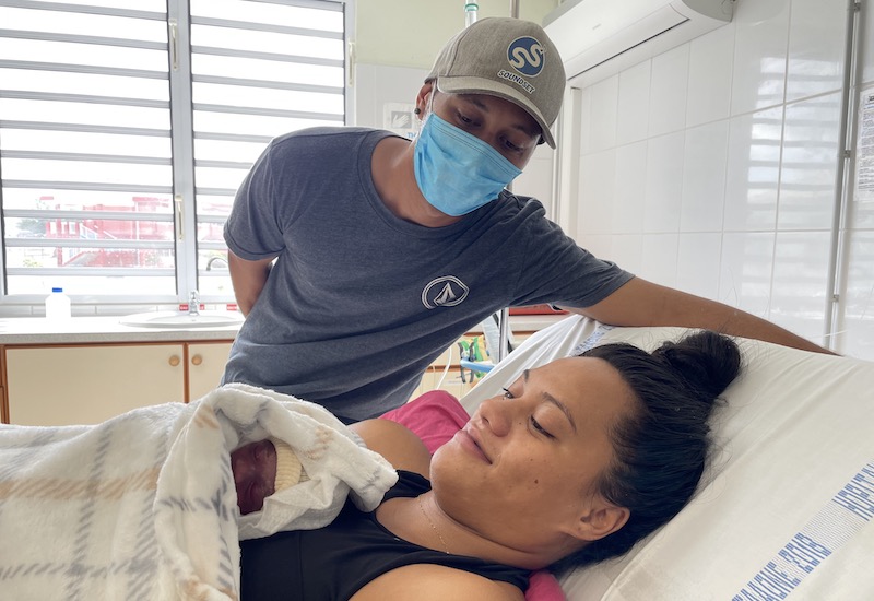 Hao le 25 avril 2022- Très tôt lundi matin est né le petit Taumata au dispensaire de Hao, un fait très rare sur l'atoll. Programmée pour le mois de juillet, sa naissance est finalement arrivée le jour de l’anniversaire de son papa Iona. Le bébé et la maman Manuiti vont bien et seront évasanés vers Tahiti à bord du Casa dans la journée.
