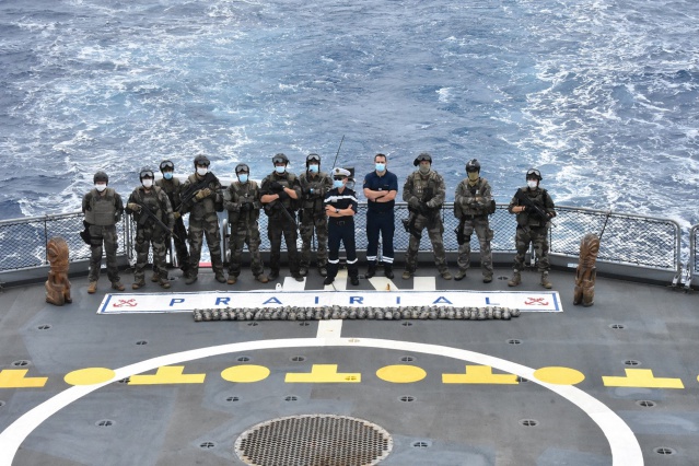 Sur la base d’un scénario fictif mettant en scène un voilier considéré comme suspect et battant pavillon étranger, l'exercice d’interception de trafic de stupéfiants réunissant Marine nationale, douanes et gendarmerie a été organisé depuis la frégate Prairial par le commandant de la zone maritime de l’océan Pacifique, le contre-amiral Jean-Mathieu Rey, sous l’autorité du haut-commissaire, Dominique Sorain, représentant de l’État en mer.