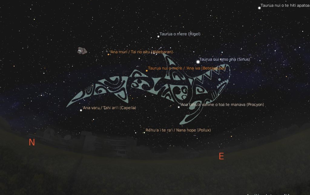Dans le cadre de la navigation Nord-Sud, les Polynésiens utilisaient donc ces 10 étoiles qui se succèdent durant la nuit (entre 20h et 4h du matin) dans le ciel. Pour bien les utiliser, il fallait qu’elles se positionnent au zénith : c’est seulement à ce moment-là qu’il est possible d’exploiter leur tracé céleste.
