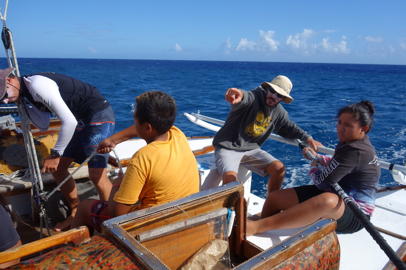 Au mois de février, le deuxième volet du projet a amené les élèves à l'écomusée Fare natura. Ils y ont abordé la thématique du peuplement de nos îles à bord des pirogues à voile traditionnelles, et ont pu fabriquer des tītīrāina (de petits bateaux confectionnés avec les matériaux naturels à disposition dans l’environnement du bord de mer). Enfin, pour la dernière étape du projet, Raphaël Labaysse, constructeur et capitaine de la pirogue double à voile Vaapiti, est intervenu auprès des élèves pour leur présenter un modèle réduit de sa pirogue traditionnelle. Il s’agissait notamment d’appréhender les bases de la navigation et de leur faire comprendre sa structure ainsi que les matériaux utilisés pour la construction de chaque partie. Enfin, une sortie en mer d'initiation à la navigation traditionnelle à bord de Vaapiti, fin avril, est venue en point d'orgue, clôturer le projet de ces collégiens et de leurs professeurs.