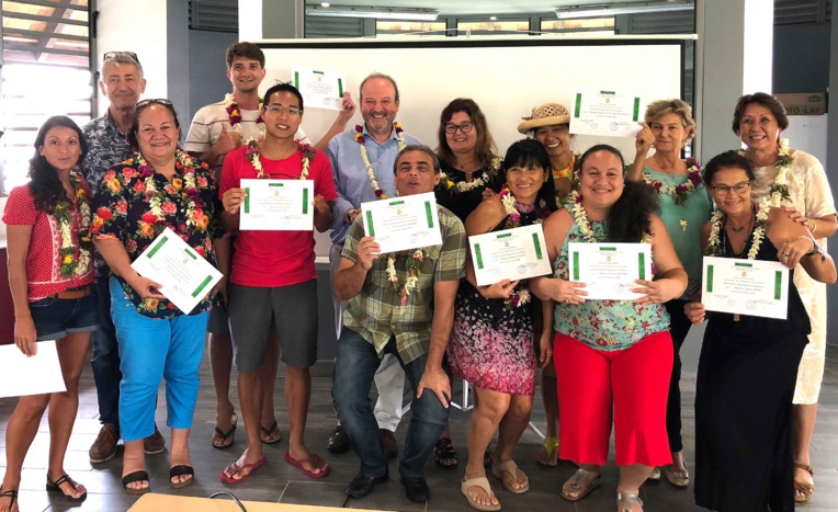 La cérémonie de remise de diplômes universitaires des neuf infirmières et infirmiers ayant suivi la formation " Infirmières à compétences élargies en soins de santé primaire insulaire ", s’est déroulée, lundi 10 décembre, sous le Fare Potee, à la Direction de la santé.