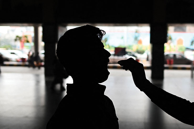 Devant un centre de tests d'un quartier d'affaires, la file s'allonge avec un air de déjà vu. Plus d'une cinquantaine de personnes attendent sous le soleil d'été austral. Certains sont cas contact, d'autres veulent juste se débarrasser d'un doute. Aucun n'a vraiment l'air mal en point.