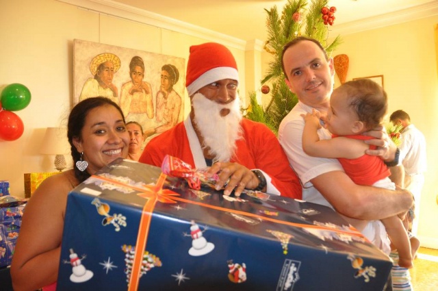 Comme l'année précédente, un groupe d'une douzaine d'enfants dont les parents sont sans domicile fixe ont été invités grâce à l'Ordre de Malte qui les accompagne et les aide au quotidien pour faire face à leurs difficultés. Ils ont tous reçu un cadeau comme les autres enfants présents.