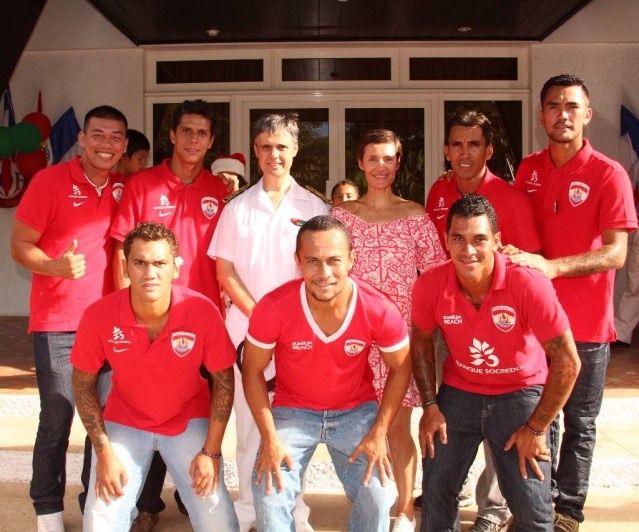 A 16 heures, les enfants ont eu une belle surprise lorsque le Haut-Commissaire a annoncé l'arrivée des Tiki Toa et des pères Noël pour la distribution de cadeaux. C'est avec une grande joie et dans une ambiance festive que les Tiki Toa ont été chaleureusement accueillis par les enfants et les parents, heureux de revoir les joueurs qui ont porté haut les couleurs de la Polynésie française lors de la Coupe du Monde de Beach Soccer.