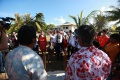 “C’était un mardi. On a cru d’abord que c’était un Mara’amu. A 16 heures, les vagues ont commencé à sortir de la passe. A 18 heures elles sont montées sur le quai… Jusqu’à 1,3 mètre”. Comme la plupart des anciens de Manihi, Louis Tetua a un vif souvenir du cyclone Orama qui s’est abattu sur le petit atoll de 600 habitants en 1983. Quelques minutes avant l’arrivée très attendue du Président de la République sur l'île pour la deuxième journée de sa visite officielle, les Paumotu racontent. “A 22 heures, les baraques s’envolaient”, rappelle Tino, retraité de 63 ans. “Le cyclone a laissé des blessures”, a rappelé le maire de la commune, John Drollet, dans son discours d’accueil. “Nous ne voulons pas être les premiers réfugiés climatiques”.