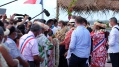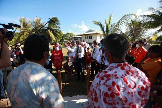 Tahiti, le 26 juillet 2021 – Arrivé en début d’après-midi à Manihi, le Président de la République a évoqué les défis sanitaires mais surtout climatiques auxquels font face les Tuamotu, salué “l’esprit de résistance” des Paumotu et rappelé les 6 milliards de Fcfp déployés pour la construction de 17 abris anticycloniques.