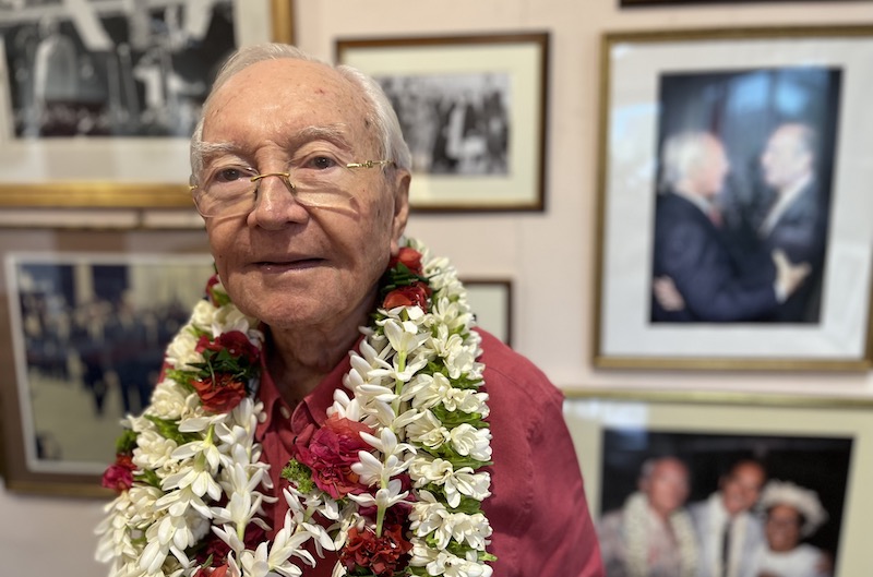 Tahiti, le 24 juin 2022 – Deux jours après son dernier conseil politique post-législatives, le président du Amuitahira'a o te Nuna'a Maohi, Gaston Flosse, revient pour Tahiti Infos sur sa stratégie pour les territoriales de 2023, les démissions au sein du parti orange et les difficultés financières de son mouvement.