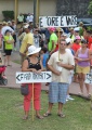 Il faut dire qu'avant le démarrage du défilé, des consignes de modérations dans les attitudes et les propos ont été données. Malgré tout, certains membres du défilé ne cachent pas leur opposition pure et simple à l'islam, comme cet homme portant une pancarte à l'avant du cortège : "je défile pour éviter qu'on construise une Mosquée à Tahiti. Ils peuvent faire leur religion s'ils le veulent mais qu'on les voie le moins possible. Ils peuvent faire leur mosquée à Mururoa là-bas, on leur donne l'autorisation !" Un autre insiste plus directement, devant un micro : "il y a trop d'histoires, il a trop de choses qu'on voit, c'est de la merde cette religion. On n'en veut pas, c'est tout."
