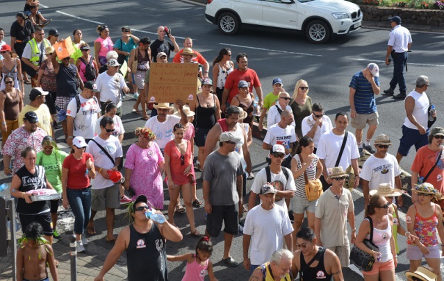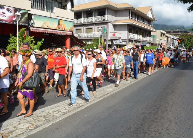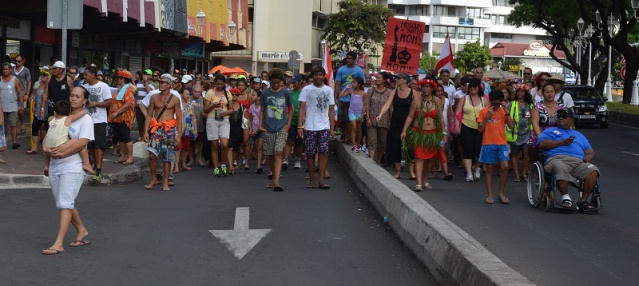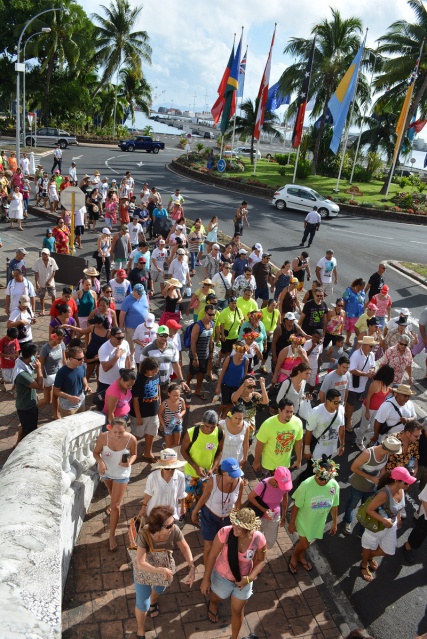 PAPEETE, le 13 juillet 2014 - Ce samedi 12 juillet après-midi les rues de Papeete ont résonné sous les slogans anti-Mosquée et anti-Imam. Pour la deuxième manifestation contre les projets de l'Imam El-Barkani, la mobilisation a été très forte, la police comptant 1200 personnes, alors que l'organisation a compté 5000 à 7000 personnes.