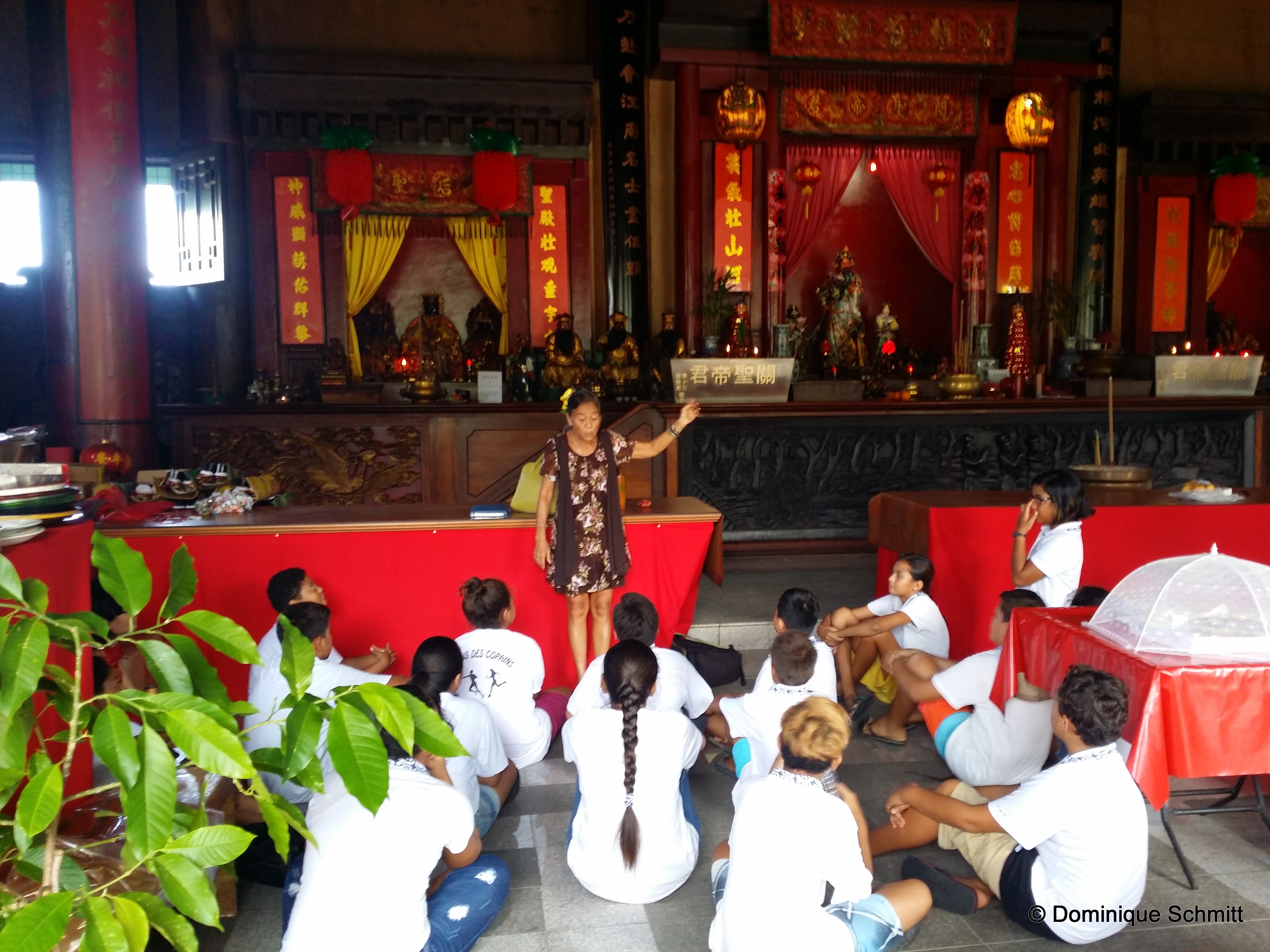 Hier matin, des élèves de la classe de sixième Tamanu du collège adventiste de Tiarama ont écouté attentivement Germaine Chung, la responsable du Temple Kanti et du foyer abritant les personnes âgées, à Mama'o. La dame a raconté aux enfants l'histoire de ce lieu sacré où règne le dieu Kanti, reconstruit en 1987 (après avoir brûlé lors d'un incendie en 1981), et leur a expliqué les différents us ancestraux, avant de leur faire goûter quelques spécialités culinaires. Accompagnés de Mme Mou, professeur de lettres, et de Mme Wong, documentaliste, les collégiens devront réaliser ensuite un exposé dans le cadre d'un projet éducatif. Selon Madame Chung, l'année du Coq appelle "au travail et à la réalisation de projets, mais il faudra faire des efforts !" Si quatre signes de l'horoscope chinois nécessitent une protection particulière (lire ci-dessous), elle relativise : "Il faut prendre surtout le bon côté des choses et éviter tout ce qui est négatif." Restez donc optimiste, et Kung Hei Fat Choy !