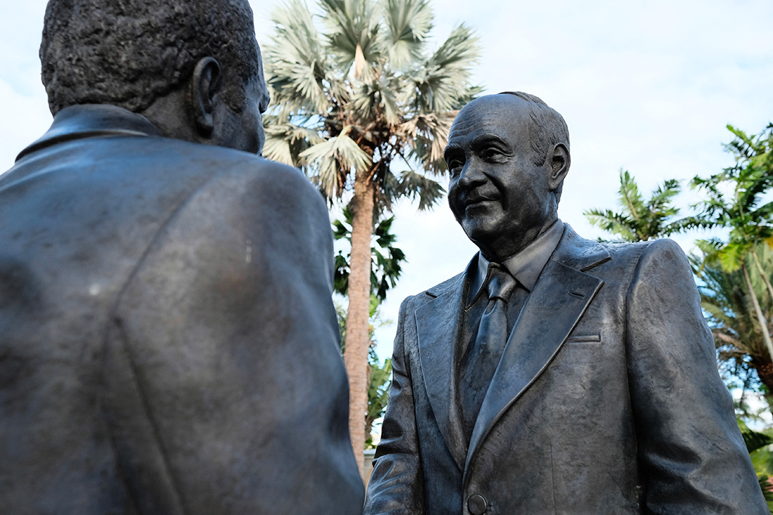Une statue de la poignée de main entre Jacques Lafleur (mort en 2010), et Jean-Marie Tjibaou (assassiné en 1989) lors de la signature des accords de Matignon avait été inaugurée en juin dernier à Nouméa.