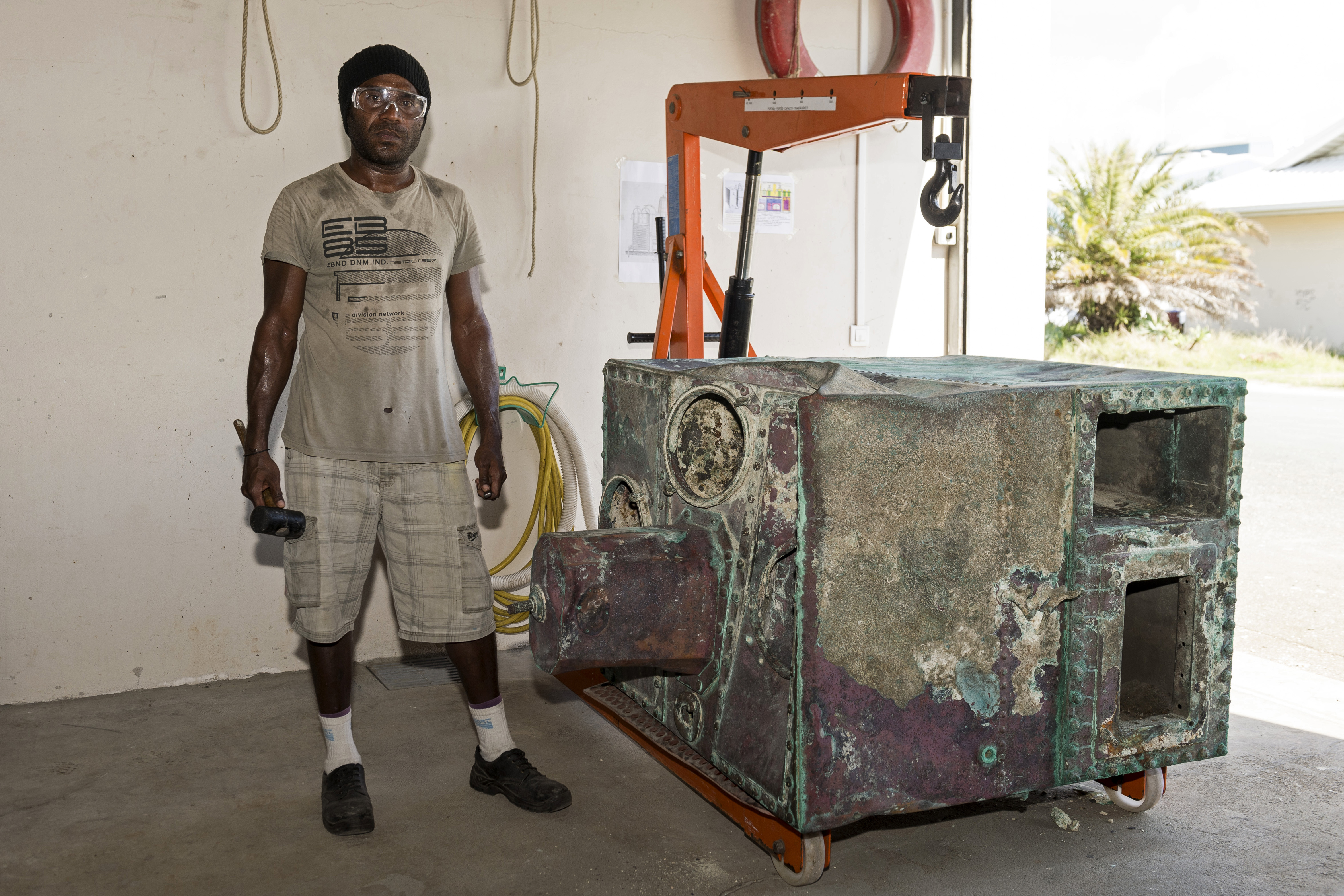 Entreposé au laboratoire du Musée maritime de Nouméa, il va subir un traitement électrochimique de plusieurs mois pour arrêter la corrosion et ôter la croûte de calcaire.