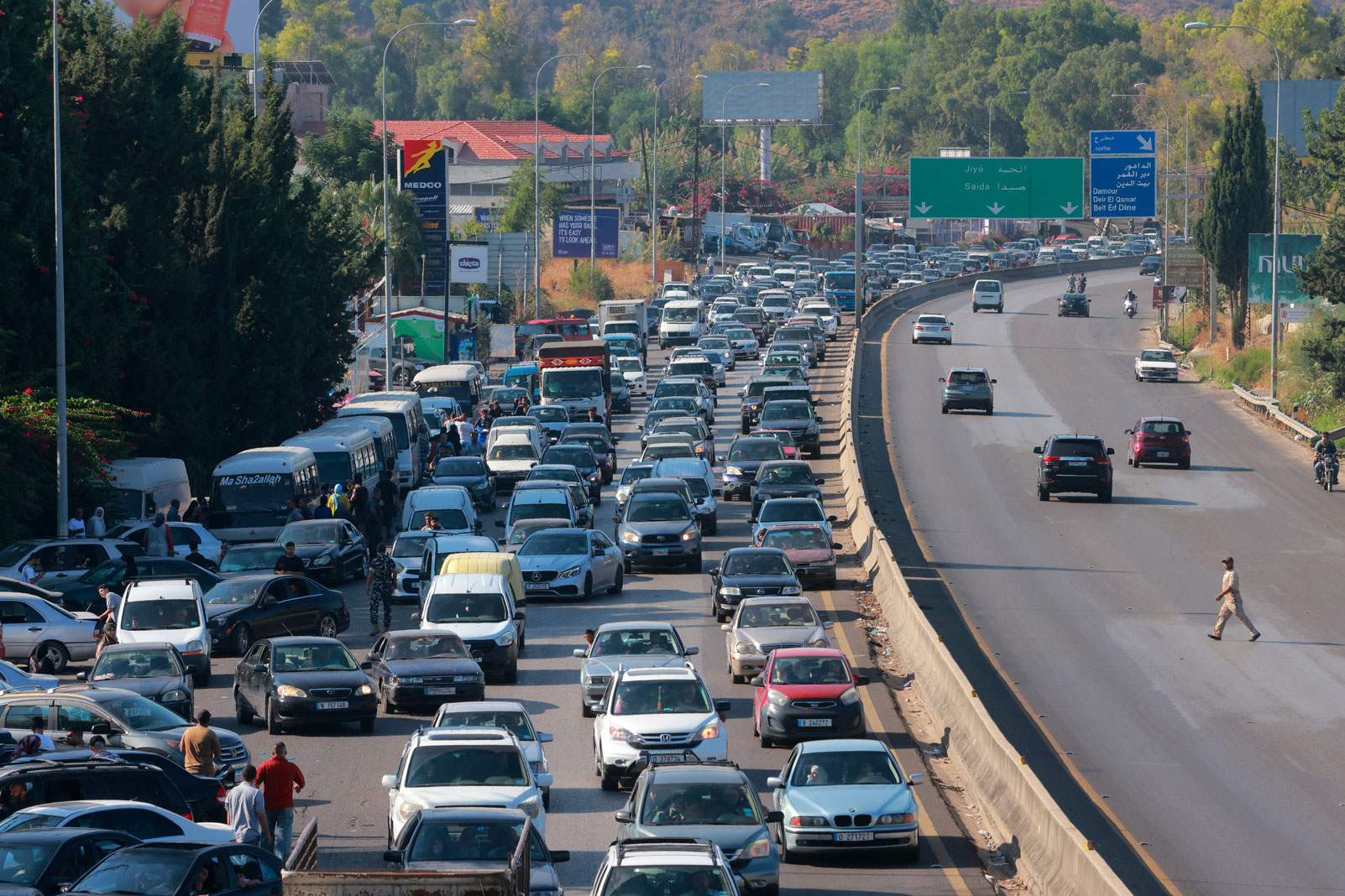 Mardi, de longues files de voitures étaient bloquées sur la route menant vers la capitale. A Saïda, les gens formaient des files d'attente devant les stations-service et les boulangeries.