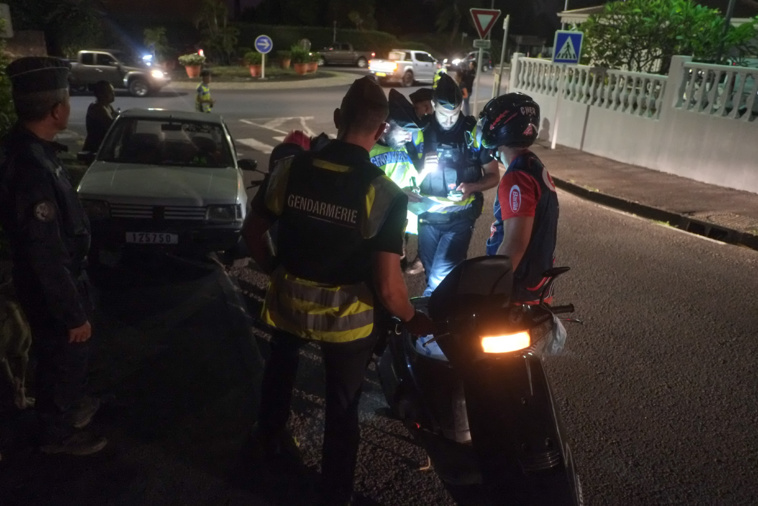 Opération coup de poing, jeudi en début de soirée au niveau de la mairie de Arue et au sommet de la côte du Tahara’a à Mahina. Un total de 25 militaires de la gendarmerie a été déployé sur ces deux points de contrôles : le peloton de surveillance et d'intervention de la gendarmerie, de la brigade cynophile et de la brigade de Arue. Un criblage systématique a permis le contrôle de 230 véhicules, avec une attention toute particulière portée sur les deux-roues, pour plus de la moitié (130) des interventions.