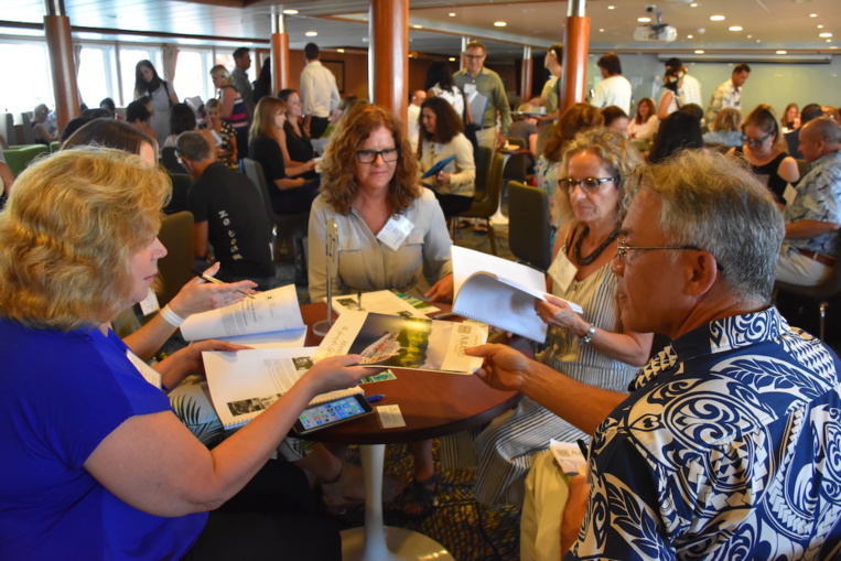 C’est la grand-messe annuelle organisée sur place en vue de stimuler l’intérêt et la connaissance des voyagistes nord-américains pour la destination Tahiti et ses îles. Samedi, la 15e édition du salon Tahiti Travel Exchange a accueilli 107 professionnels américains et 41 canadiens, à bord du cargo mixte Aranui, pour une journée de speed dating entièrement dédiée à la promotion de ce que peut offrir l’industrie touristique du fenua.