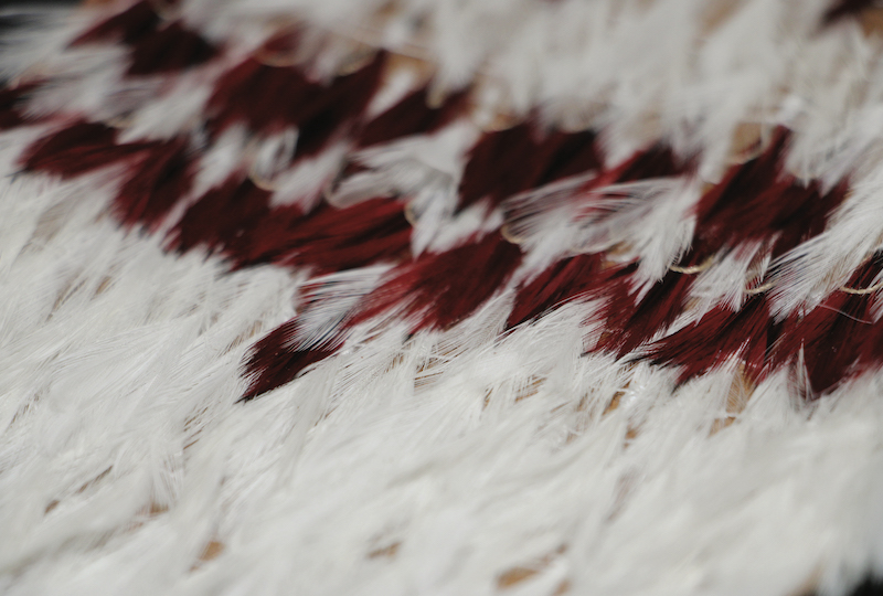 “Pendant mon DN MADE, j'ai choisi d'effectuer tous mes stages dans la plumasserie, métier d'art spécifique à la plume, ce qui a réveillé une passion, même si je savais déjà que la plume avait une importance dans la culture polynésienne… J'ai eu envie de découvrir le matériau et le métier d'art français associé. Pendant mon stage chez le plumassier parisien Julien Vermeulen, tout aussi passionné que moi, on a lancé ensemble des expérimentations de reconstitution de pièces de plumes de plusieurs régions du monde, notamment une cape d'Amazonie brésilienne. Pour aller au bout du projet, j'ai organisé une visite au musée du quai Branly pour voir en vrai cette fameuse cape et en même temps d'autres objets d'Hawaii ou de Nouvelle-Zélande et j'en ai profité pour demander à voir le maro'ura. J'ai passé l'après-midi entier avec lui et tout est parti de là.