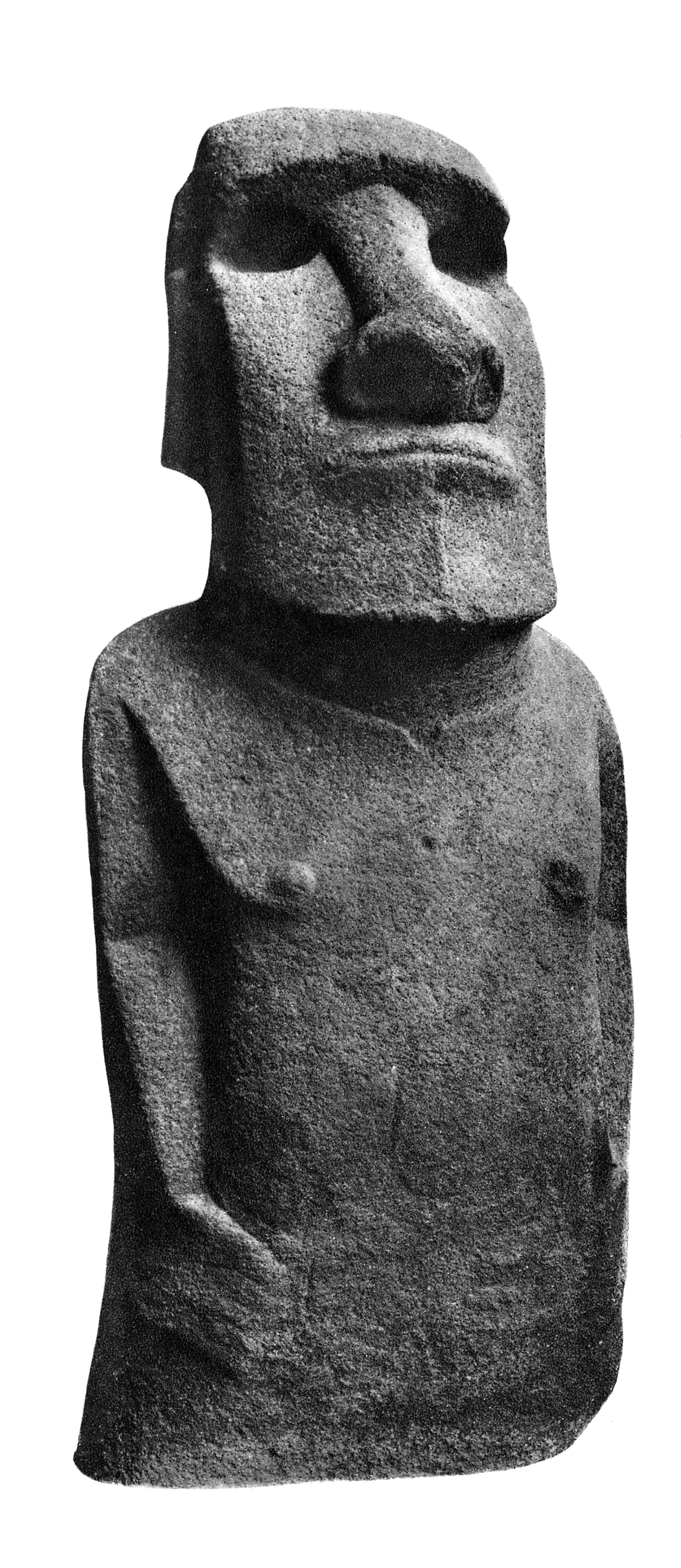 En 1868, un navire de guerre anglais, le HMS Topaze, ancra au large de l’île ; à terre, avec les encouragements du roi français Jean-Baptiste Onésime Dutrou-Bornier, qui monaya ce « cadeau », l’équipage britannique détruisit une des 53 maisons du village d’Orongo pour en extraire la Briseuse de vagues qui fut ramenée à Porthsmouth, en Europe, le 25 août 1869. Elle est aujourd’hui conservée au British Museum, depuis que la reine Victoria en a fait don au musée.