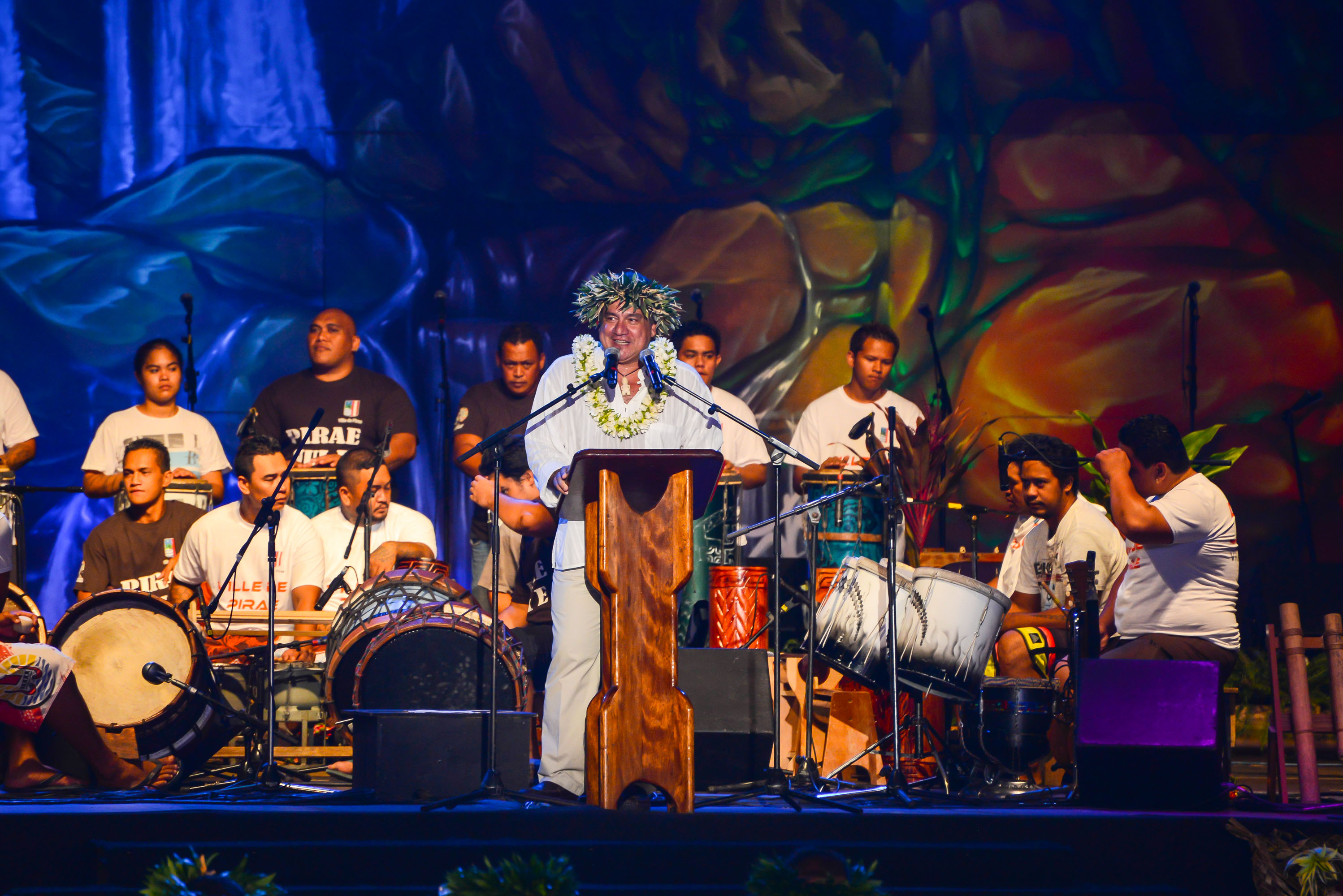 PAPEETE, le 3 juillet 2015- Le ministre de la Promotion des langues et de la Culture, Heremoana Maamaatuaiahutapu, accompagné de membres du gouvernement, a assisté jeudi soir, à To’ata, à l’ouverture du Heiva I Tahiti 2015.