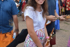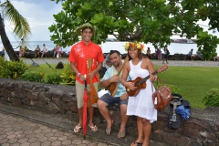 « Ça fait un an et demi que je suis à Tahiti, an pour Aurélien. On savait jouer du ukulele avant de venir. Ce qui nous a attiré c’est ce grand rassemblement de ukuleles. Et on a appris un chant en tahitien, Bora Bora. Pour les autres, on a improvisé… On a suivi sur l’écran, copié sur les autres. Ce que j’ai adoré c’est l’harmonie de tout le monde qui joue en même temps, les couleurs, comment tout le monde était habillé. C’était magnifique. Vive Tahiti et vive la Polynésie ! »