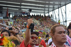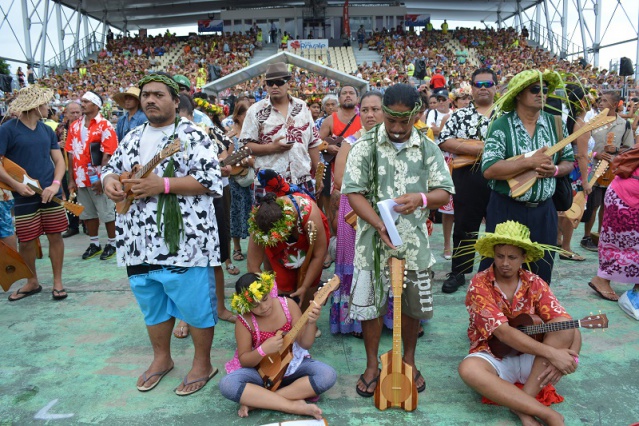 « C’est un instrument qui vient à la base de Braga, au Portugal, mais les Polynésiens se le sont approprié : on est presque 5000 aujourd’hui, faute de place, mais si les Américains nous battent, on sera 10 000 à Pater en aout ! » a conclu, en forme de promesse, le ministre de la culture Heremoana Maamaatuaiahutapu.