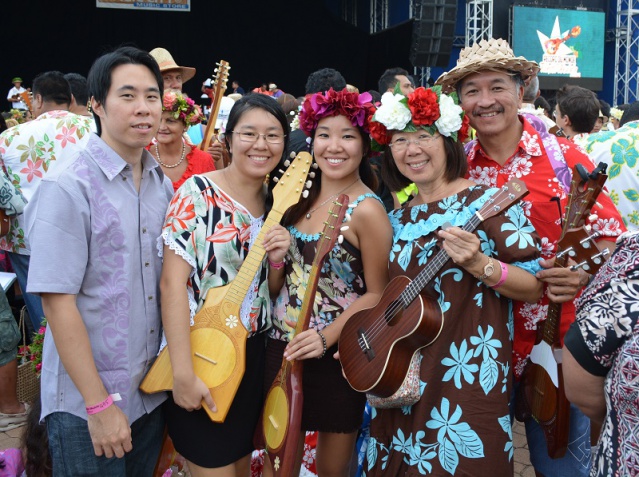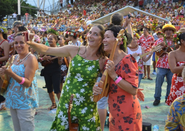 « Il n’y a pas une famille polynésienne où on ne trouve pas un ukulele qui traîne, c’est l’instrument sur lequel on pleure son chagrin » a déclaré le président de la Polynésie française Edouard Fritch, avant de monter sur scène pour jouer aux côtés des stars tahitiennes et hawaiennes qui ont assuré le show aux intermittences, tandis que de nombreuses personnalités politiques grattaient aussi les quatre cordes de leurs ukulele, mélangées au public et souvent en famille.