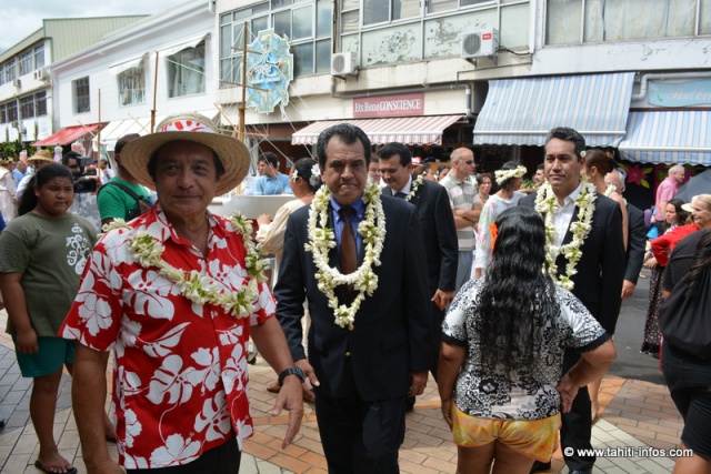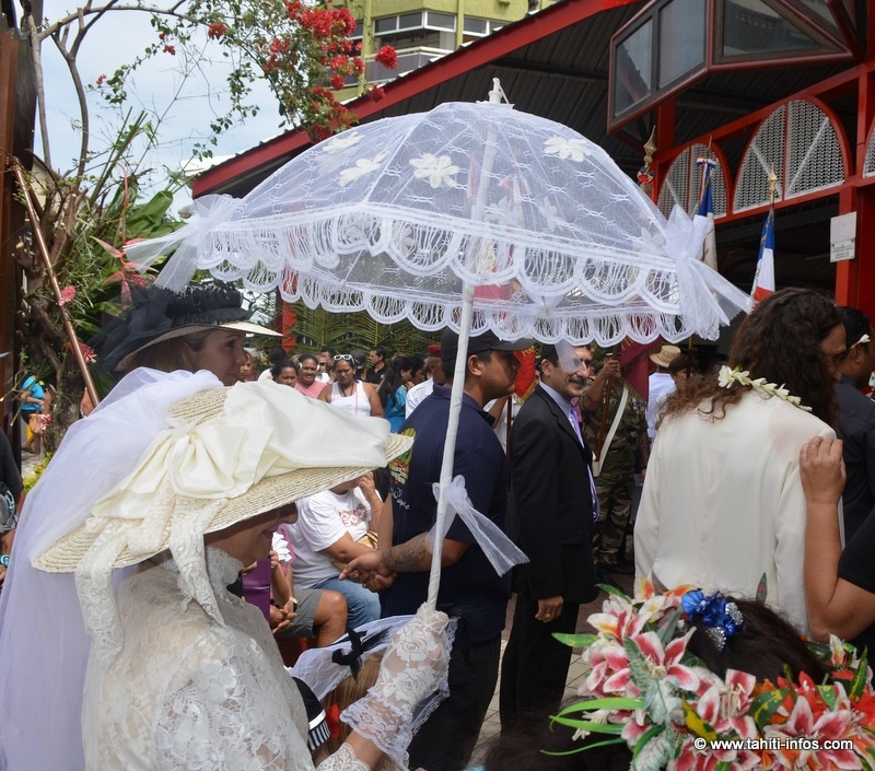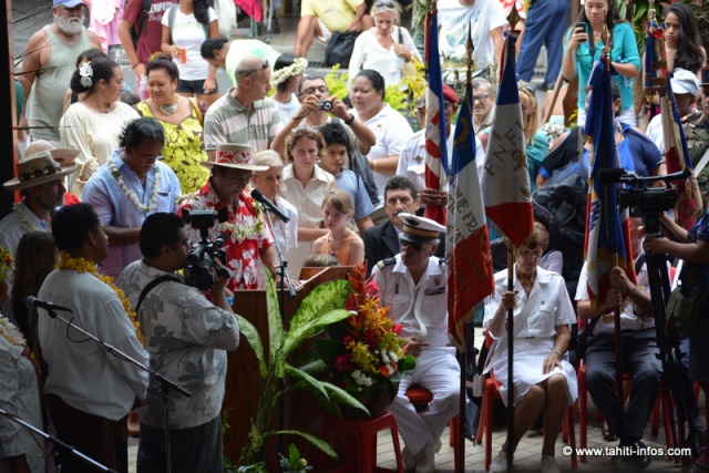 Les évènements officiels se sont aussi succédés, à commencer par une célébration au monument aux morts, puis un grand rassemblement au marché de Papeete où une plaque commémorative a été inaugurée. Après les discours du maire de Papeete Michel Buillard et du président Edouard Fritch, un moment d’émotion a été le discours de Didier Destremau, le petit-fils du commandant Maxime Destremau qui organisa la défense héroïque de la ville avec des moyens dérisoires. Le public a chaleureusement applaudi quand il a dû interrompre ses remerciements, submergé par l’émotion. De nombreux membres de la famille Destremau était également là pour ce centenaire.