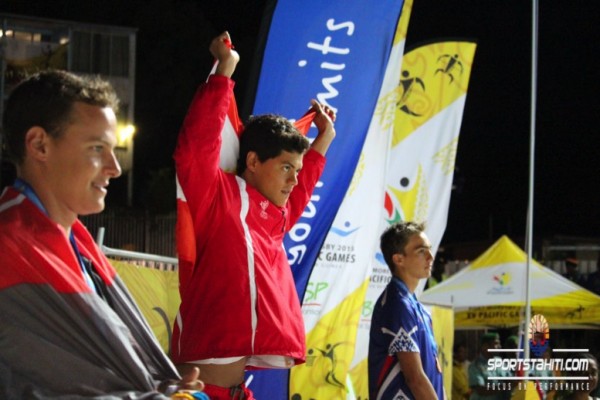 Puis, ce fût au tour de Rahiti De Vos de s’élancer sur son 1500m, où sans surprise, il remporte la course avec à la clé un nouveau record des Jeux avec 15’50″16. La calédonien Jeremy Dufourmantelle termine deuxième en 16’17″52. Le papou Sheldon Aragata arrive troisième en 18’02″31.