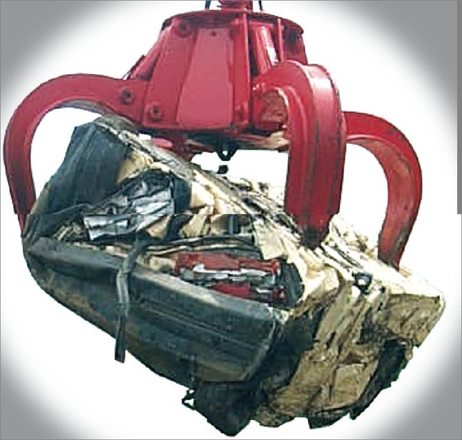 batterie, carburant et huile. Ensuite un élévateur déposait le véhicule à compacter entre les