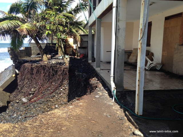 Un enrochement effondré, des murs détruits, une énorme crevasse a fait son apparition. Depuis la semaine dernière, les habitants du PK 17 de Papeno’o vivent dans la crainte, car ils n'ont plus de protection en cas de forte houle.