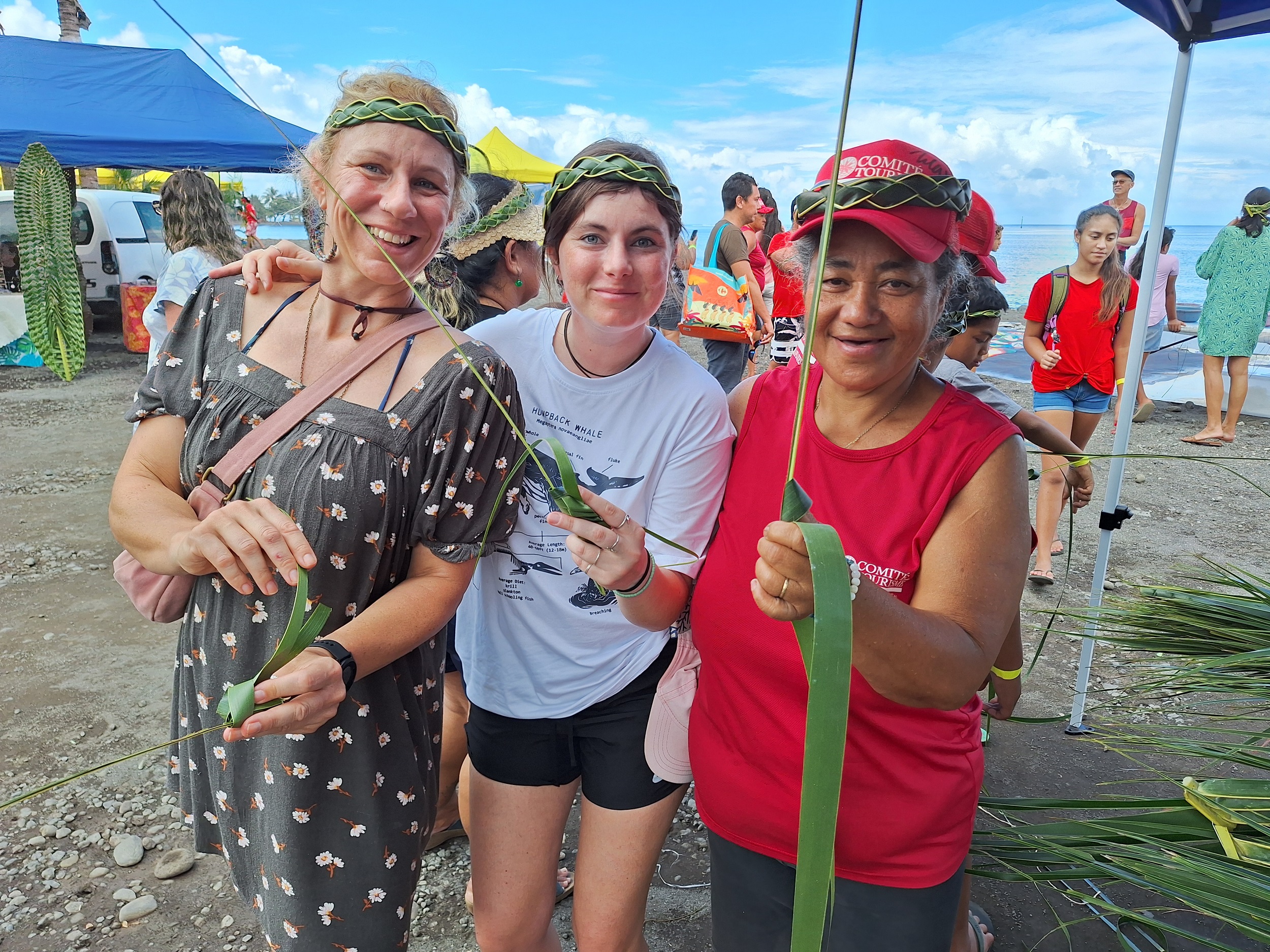 Les ateliers artisanaux ont rencontré un franc succès auprès des enfants, comme des touristes. “Notre hôte nous a dit qu’il y aurait des animations, donc on est venues en profiter”, a expliqué Olivia, accompagnée d’Alessia sur l’initiation au tressage de nī’au. “On vient de France et de Belgique. Nous sommes à Teahupo’o pour deux jours. Je voulais absolument venir ici pour le côté nature et sauvage. Dans le cadre des JO, j’avais vu une émission à la télévision sur cet endroit paradisiaque”, a-t-elle poursuivi, visiblement conquise.