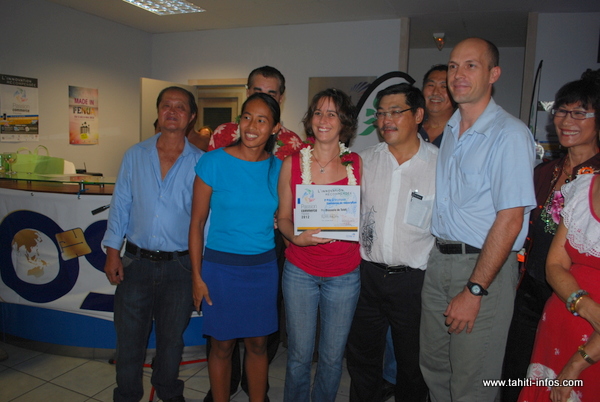 C'est le site tahitimaeva. com qui a remporté le 1er prix de la catégorie E(=-commerce et qui s'est vu remettre un chèque de 150 000 f par le partenaire OSB, un an d'abonnement à la manabox offert par Mana ainsi qu'un bon pour une formation chez Api Formation.