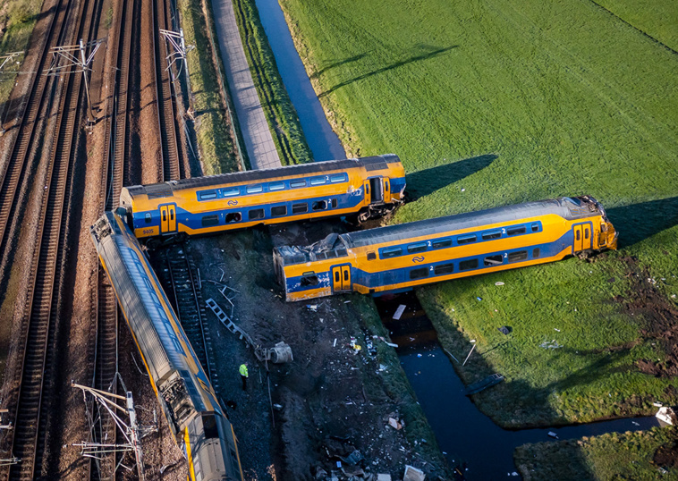 Voorschoten, Pays-Bas | AFP | mardi 03/04/2023 - Un train à grande vitesse transportant des voyageurs a percuté tôt mardi du matériel de construction avant de dérailler aux Pays-Bas, près de La Haye, faisant au moins un mort et 30 blessés, ont annoncé les services de secours.