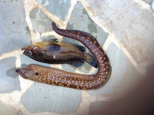 « On espère une accalmie avant mercredi pour les dernières sorties en mer. La pêche va se faire au delà des 30M. Malgré l’interdiction d’utiliser la lampe, la plupart des pêcheurs qu’on croise en ont. On a trouvé quelques sars, mérous, corbs et murènes. Mais ce sont des poissons qui se déplacent, on espère les revoir lors de la compétition. Sinon on reste motivé et attendant impatiemment le début des hostilités ».