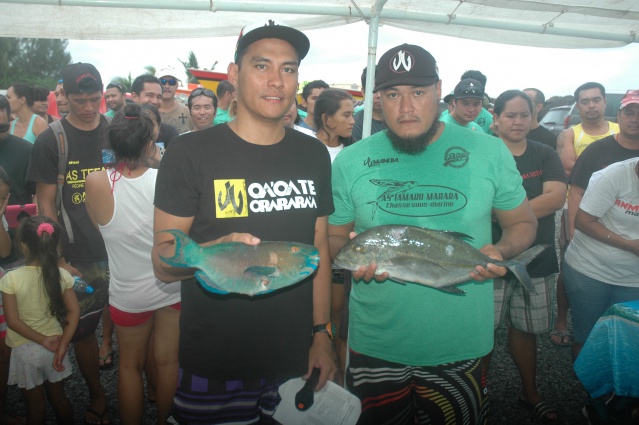 Dès le départ, nous avons foncé vers le motu nono sur « ordre » de notre capitaine et nous avons effectué la totalité de notre pêche a l'intérieur des hauts fonds. Au début nous avons fait 2 prises valables dont 1 ati'ati'a upo’o rahi et 1 tapi'o puis plus rien… la pêche fut très difficile car nous n'étions pas les seuls dans l'eau. Pendant près de 2h30, aucune prise valable, alors nous nous sommes rendus sur un caillou près du motu. Celui-ci était difficile à trouver car il est en retrait par rapport au haut fond principal. C’est là que nous avons effectué la moitie de notre pêche : paaihere, ‘ahuru, pa’ati mauve. Au retour,près de la bouée de départ, nous avons fait 3 dernières prises dont 1 ati'ati'a upo’o rahi, un mōreo et 1 māmaria.Nous sommes contents, nous avons assuré l’organisation et la pêche.