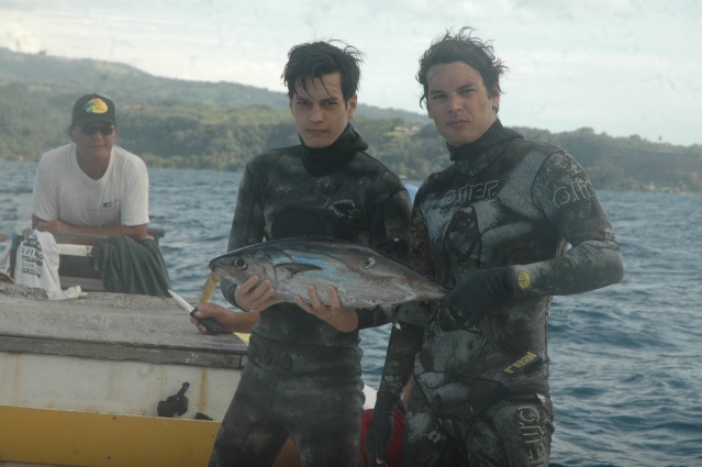 Le gros des équipes novices se dirigent vers le motu Nono en longeant l’extérieur ou l’intérieur du haut fond. L’eau est trouble et de peur de perdre régulièrement de vue le haut fond qu’ils ne connaissent pas, seules les équipes novices de Tefana se dirigent vers la zone, opposée où le récif leur donne un point de repère idéal. Teiva MOU et son coéquipier comme à leur habitude maintenant, prennent la tête du cortège et enchaîne régulièrement les prises tout comme Maheanuu PIHATARIOE et Vatea AUMERAN qui se déplacent de caillou en caillou en suivant les recommandations de leur coach Alféo. Ils connaissent bien la zone et cela leur permet d’afficher 9 prises contre 8 pour MOU – TAPI actuel leader du championnat novice. Tehau HERMAN et Rainui MANUTAHI, 2ième au classement provisoire sont moins chanceux et n’afficheront que 4 prises à la pesée. Néanmoins, ce sera toujours mieux que les équipes de Tefana parties à l’opposé. A noter, la belle prestation des jeunes frères COWAN (fils du champion ARIIPEU), qui sont restés à la bouée de départ pratiquement toute la compétition et ont sorti 6 prises dont 1 va’u de plus de 6 kilos qui leur a permis de remporter le Jackpot de la journée. Ils se classent 3ième de la journée.Belle prestation pour leur 2ième participation.