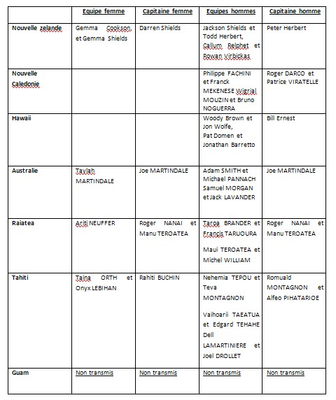 Seul 1 pêcheur , des néozélandais et des Guaméens on retrouve des piliers qui composent régulièrement leurs sélections respectives
