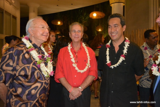 Il y a bien longtemps que les soirées polynésiennes n'avaient pas réuni une telle concentration de personnalités. Politiques, hommes d'affaires, célébrités ont répondu présent pour une soirée fastueuse à laquelle l'ensemble du personnel et des partenaires ayant participé à "l'aventure" polynésienne de Vodafone étaient conviés. "Sans eux rien n'aurait été possible!" a déclaré Albert Moux. Rappelant qu'il aura fallu plus de 8 ans pour transformer un projet en réalisation, le PDG de Pacific Mobil Telecom a comparé ce qu'il qualifie comme une aventure humaine, aux performances réalisées par ses équipes de Va'a. Shell Va'a, qui remportaient le jour même du lancement de Vodafone la Olamau race, une des courses les plus difficiles au monde à Hawaï.