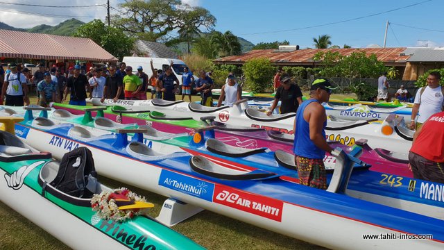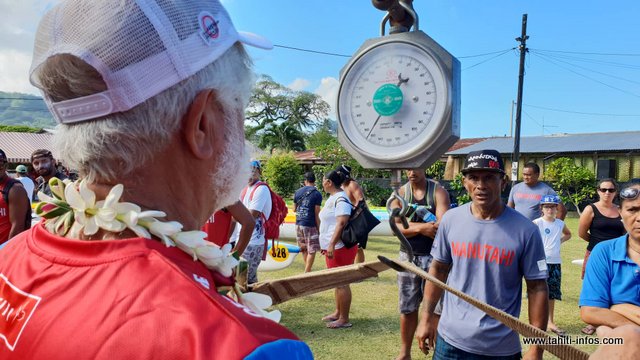 La pesée des vaa se fait sur deux journées, lundi et mardi, à Huahine (pour les séniors et vétérans hommes) et à Raiatea (pour les femmes, les juniors et les handi-vaa).