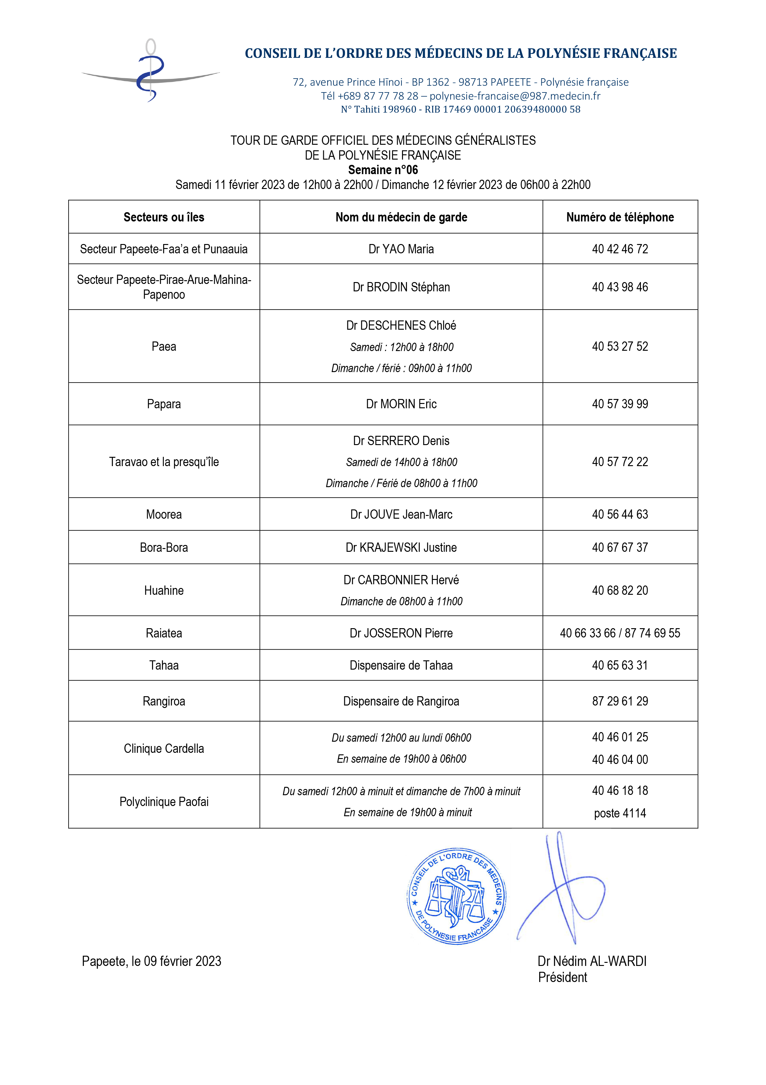 Auae Faa'a assure également les urgences au 89 36 51 58