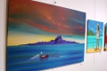 “Cette année, j’ai utilisé des couleurs un peu plus vives pour certains tableaux”, décrit Philippe Dubois. “Et notamment du jaune et du rouge que j’utilisais peu jusqu’alors.” Il a peint notamment deux grands couchers de soleil, l’un sur Bora Bora et l’autre sur Moorea. Ce qu’il n’avait encore jamais fait. “Cet exercice, avec de l’acrylique, n’est pas évident. J’ai dû m’y reprendre à plusieurs reprises notamment pour trouver le bon mélange de couleurs, mais je crois que ce n’est pas trop mal au final.”