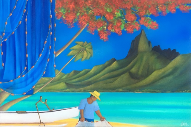 Les fidèles amateurs de Philippe Dubois le savent, l'artiste expose une fois par an à la galerie des Tropiques à Papeete. "En général, au mois d'avril", précise l'artiste. "J'ai l'habitude de présenter des scènes de vie de polynésienne, des scènes de pêche aux Tuamotu par exemple, des instants saisis au marché, des musiciens dans la rue, nos anciens trucks…"