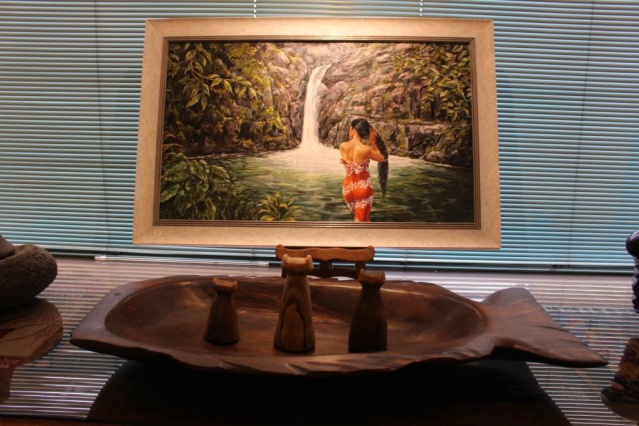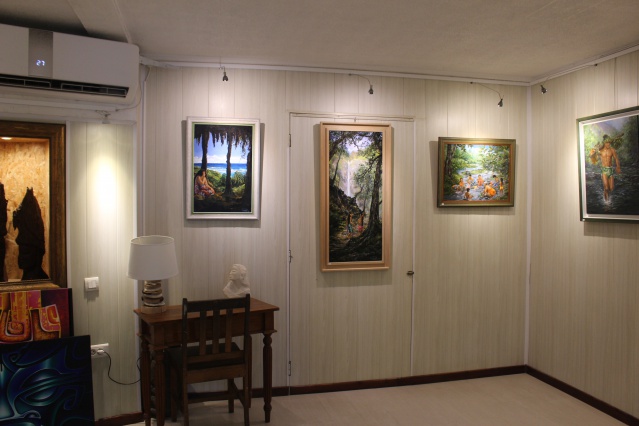 Ensuite, lorsqu’il se pose devant son chevalet, il fait “un peu comme en cuisine”, plaisante-t-il. “C’est-à-dire que j’ai un objectif, une idée générale du plat et des ingrédients que j’assemble.” Ainsi sont nées les 28 toiles du rendez-vous 2021. Les paysages, une fois encore, sont peints de telle sorte que le visiteur puisse reconnaître les endroits qu’il apprécie. Il s’agit de paysages, notamment des rivières et des lagons, présents à Tahiti, Moorea, Maupiti, Bora Bora, Rurutu, aux Tuamotu…