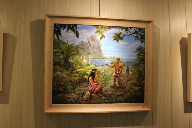 Sur les murs de la galerie du Chevalet sont accrochées les dernières toiles de l’artiste peintre Philippe Peltier. Elles sont intitulées : Aux trois cascades, Aux lavatubes, Grotte de Rurutu, Beautés de Ua Pou ou bien encore Ferme perlière des Gambier, Bord de mer à Rimatara.