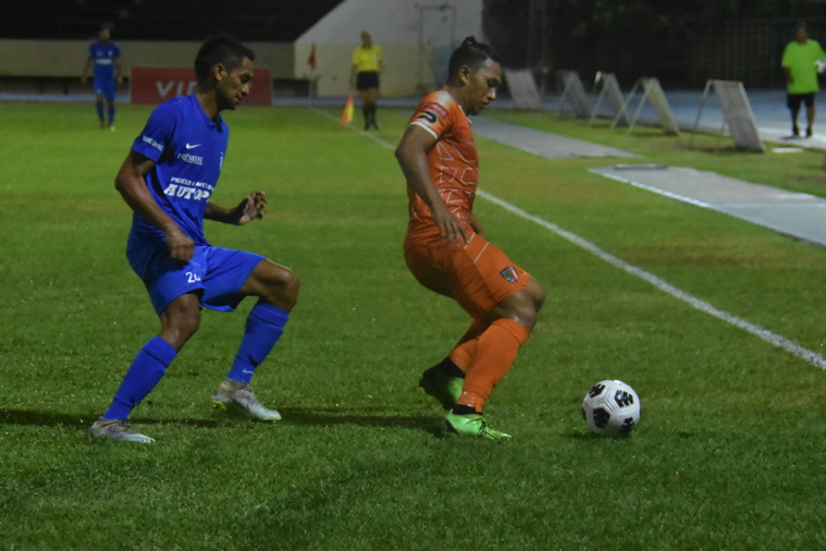 Tamatoa Tetauira, ici ballon au pied, a été l'un des grands artisans du succès de Pirae lors du barrage retour face à Dragon.