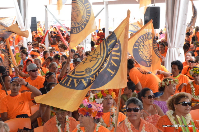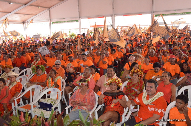 Tricots et drapeaux orange avec une marée humaine aux couleurs du Tahoeraa, le Vieux Lion a réussi son pari. Plus de 6 000 personnes se sont déplacées, samedi pour le congrès du parti politique, sur le site de Vaitupa, 8 502, selon le parti orange. L'occasion pour l'ensemble des participants d'élire le président du parti ainsi que son président délégué. Et c'est sans surprise que Gaston Flosse a été reconduit dans ses fonctions de Président du Tahoeraa Huiraatira et Marcel Tuihani remplace Edouard Fritch, au poste de Président délégué.