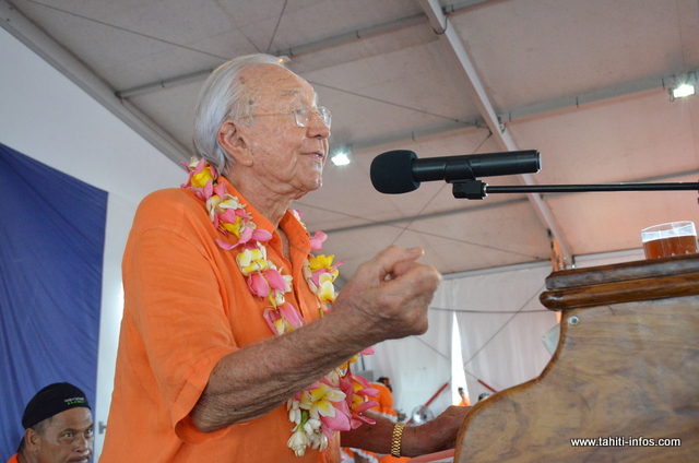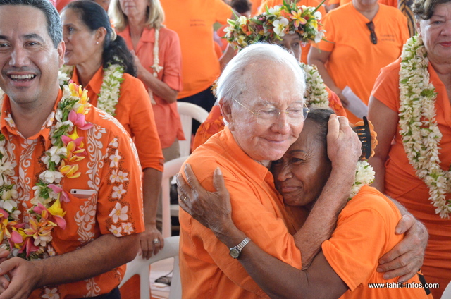 FAAA, le 28/11/2015 - Pari réussi pour Gaston Flosse, qui a rassemblé du monde samedi sur le site de Vaitupa. Parents, jeunes et enfants étaient tous vêtus de tricots orange. L'occasion pour le Vieux Lion de se faire réélire en tant que président du parti et d'élire Marcel Tuihani, en tant que président délégué. Durant les différents discours de certains dirigeants, les actes commis par Edouard Fritch étaient sur le bout des lèvres. Mais Gaston Flosse reste confiant pour la suite.